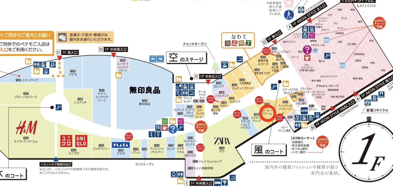 住所 大阪府四條畷市砂4-3-2 イオンモール四條畷 1F