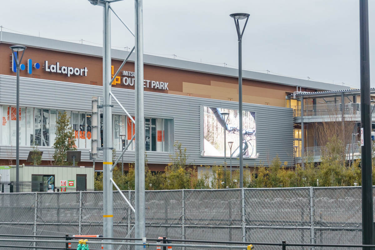 左側の足場に囲われた部分は敷地内に建設されている11階建てのマンション「パークホームズLaLa門真」。ららぽーと直結らしいのですが、たしかに繋がってる!