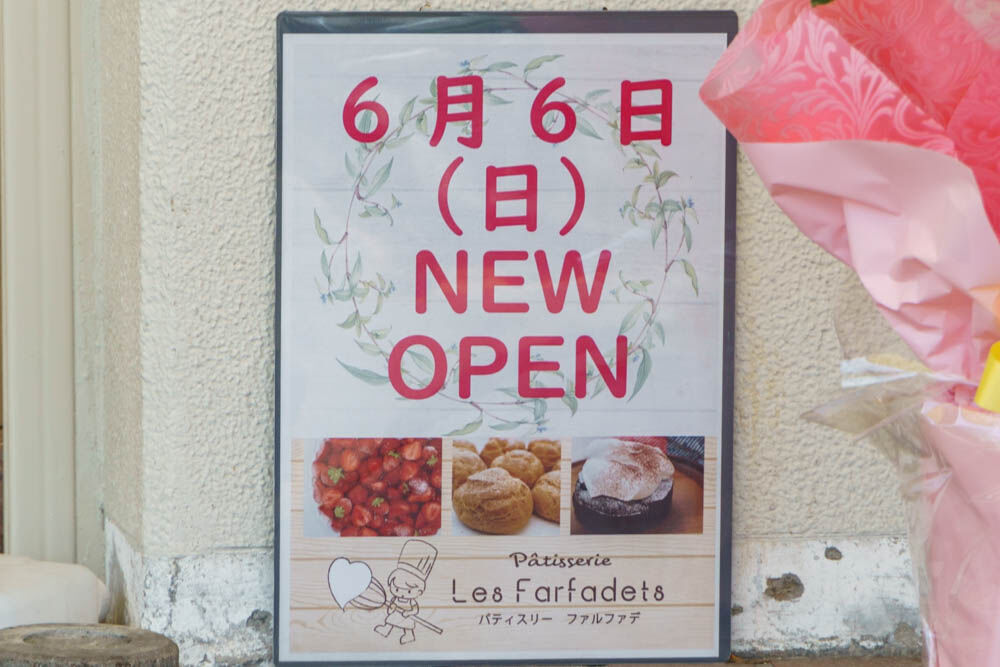 寝屋川公園駅前につくってた洋菓子店「パティスリーファルファデ」がオープンしてる