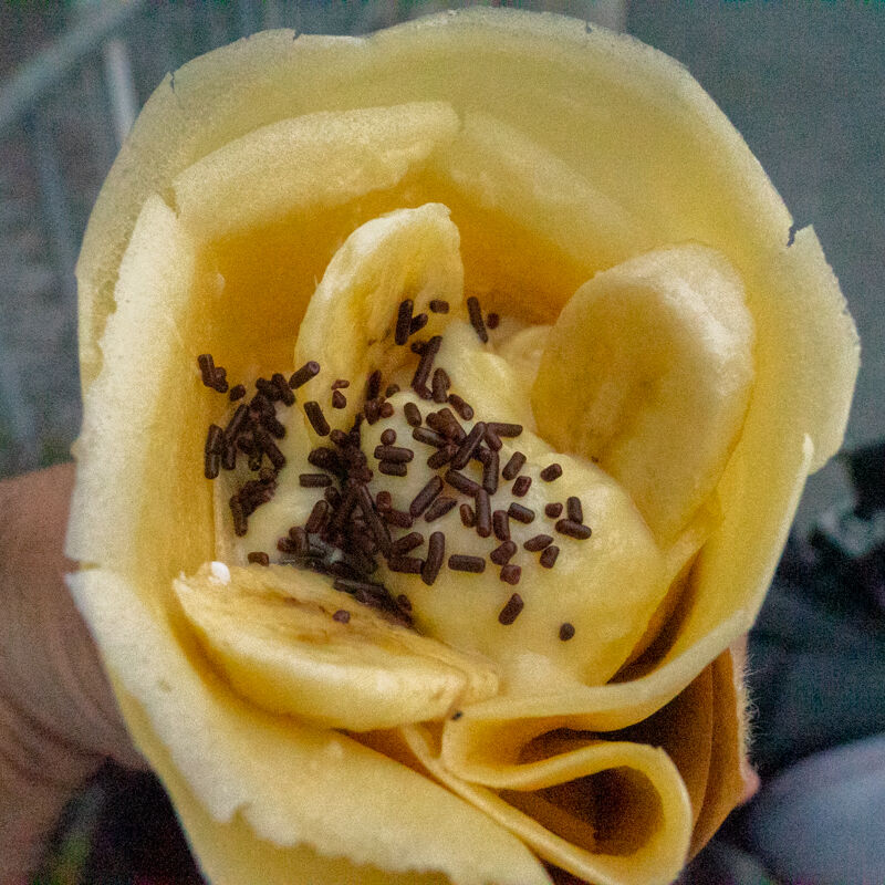 しかしやや分厚いクレープ生地がもっちり感を演出していて、カスタードクリームの卵感を加速させる感じで甘くておいしかったです!満足!