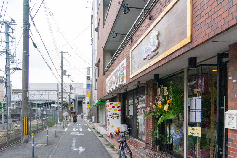 左が野崎駅で右が店舗という位置関係。野崎駅の北西部です。