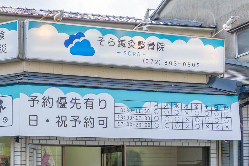 四条畷駅ちかくに「そら鍼灸整骨院」って整骨院ができてる