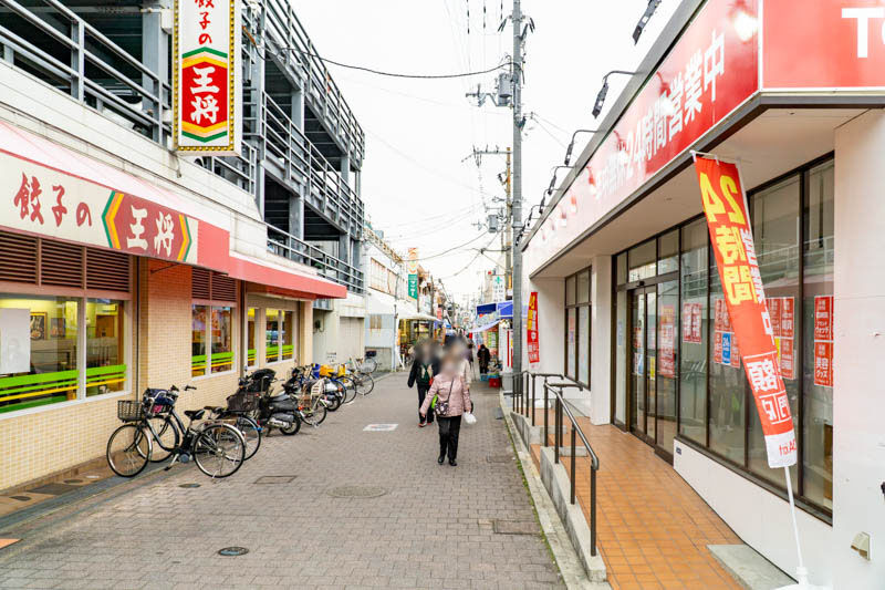 向かいには餃子の王将。進んでいくと栄通り商店会を越えて雁屋方面。