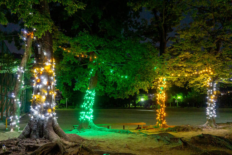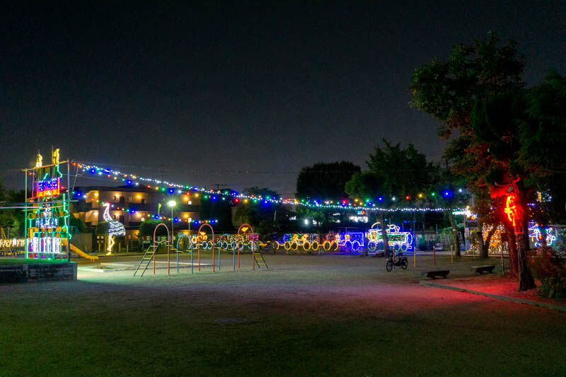 いや〜もう圧巻。この公園では毎年イルミネーションをやっているようで、電車に乗っている時どこのイルミネーション?と気になっていた謎がやっと解けました。