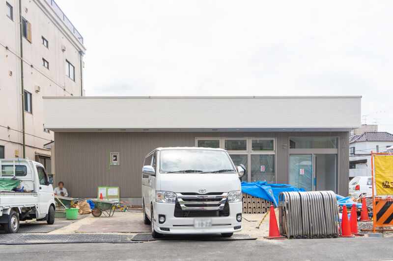 もうかなり外観ができてきていますが、パッと見はコンビニみたいな感じですね。
