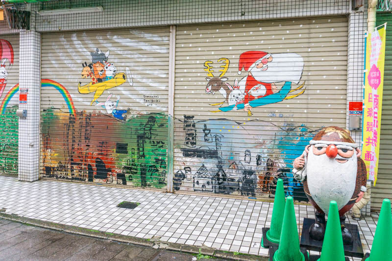(特に関係ない栄通り商店街のサンタとシャッターアート)