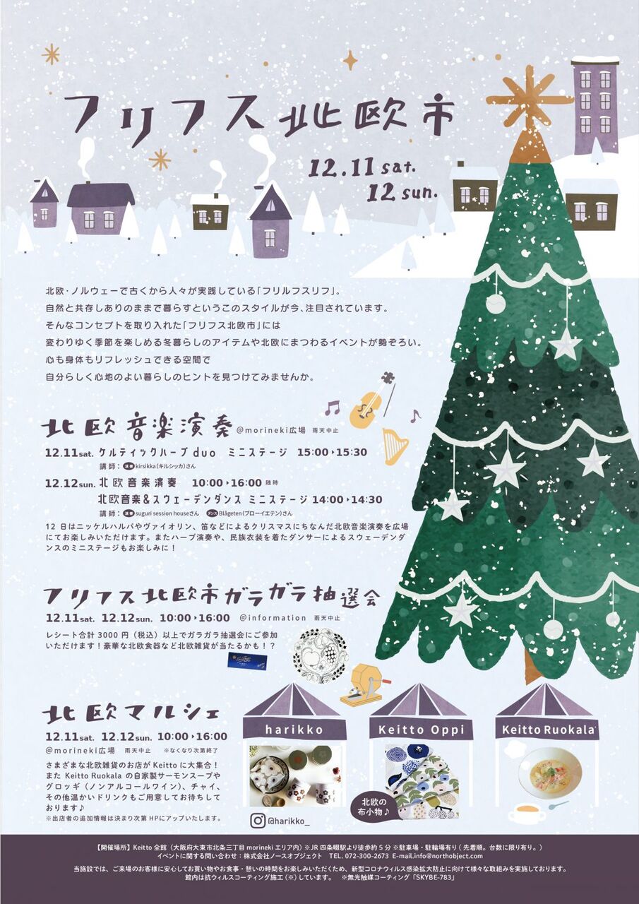 morinekiで「フリフス北欧市」って音楽演奏やマルシェが楽しめるイベントが開催されるみたい。12/11・12