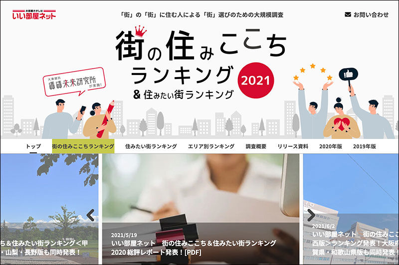 大東建託の「いい部屋ネット 街の住みここちランキング2021」は『大東建託株式会社 賃貸未来研究所』が実施している全国累計約18万人以上から得た「街」の評価結果を街の住みここちランキングとして集計したもののようです。