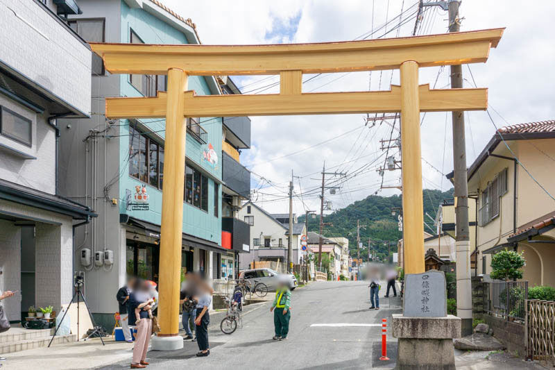 (9月に復活した直後の四條畷神社の鳥居)