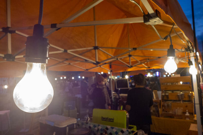 日が沈むと幻想的に。16:00から17:30ごろまで現地にいたのですが、200人以上の人が来場されていました。