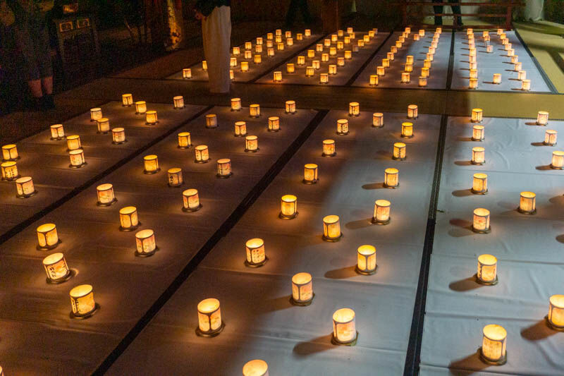 19時からは万灯会という灯籠を灯すイベントも行われているということで、夜に行ってきました。